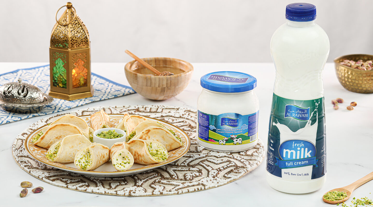 1.Combine all the ingredients in the mixing bowl and stuff the Qatayef Asafiri.