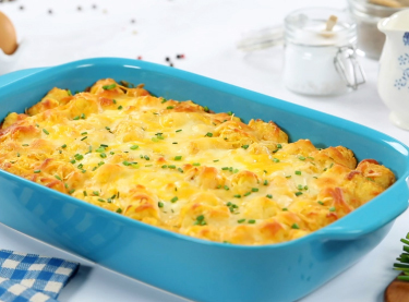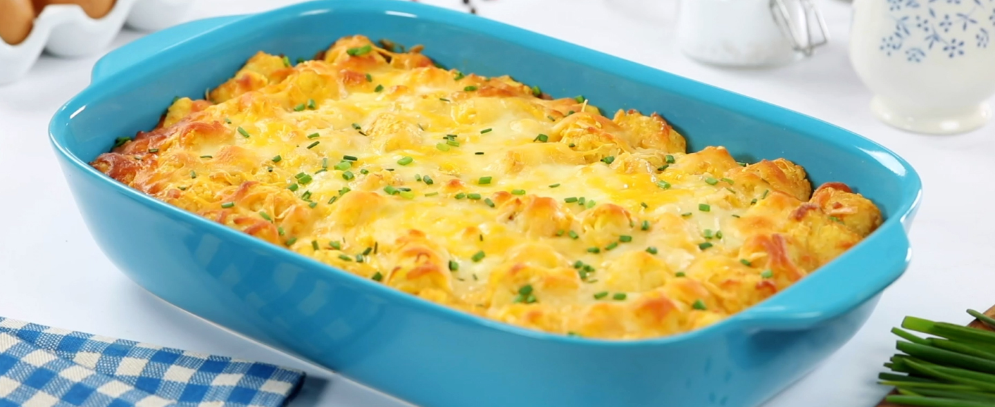 Try the mouthwatering tater tot casserole with our special creamy mozzarella cheese for a perfect lunch to share with friends!